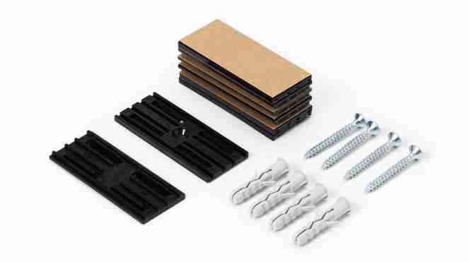 An ultra-strong double-sided adhesive hanging system with an interlocking design that provides an easy way to attach and remove panels from a wall. Screws and wall plugs are also included in the hanging kit for maximum strength and for use on uneven surfaces. Distance from wall: 5 mm.