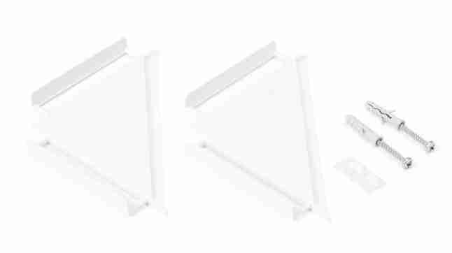 An invisible hanging kit, perfect for canvases, signs and panels. The kit allows you to adjust the angle of the panel up to 45° to ensure it’s absolutely straight. Assembly instructions: stick the triangular plates to the back of the panel with the double-sided tape, insert the screws into the wall, hang the panel and adjust the angle. Wall screws and wall plugs included. Distance from wall: 15 mm.